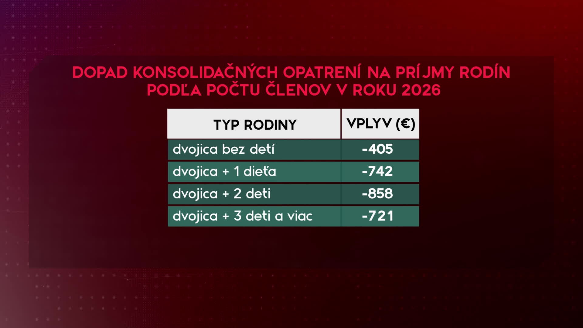 Výpočty Rady pre rozpočtovú zodpovednosť potvrdzujú pesimistické vyhliadky. Zvýšenie zdravotných odvodov, opatrenia týkajúce sa živnostníkov a zvýšenie dane z príjmu majú negatívny dopad na finančnú situáciu domácností. "Celá konsolidácia najviac dopadá na pracujúcich ľudí, či už na zamestnancov alebo na živnostníkov," vysvetľuje Martin Šuster, člen Rady pre rozpočtovú zodpovednosť.