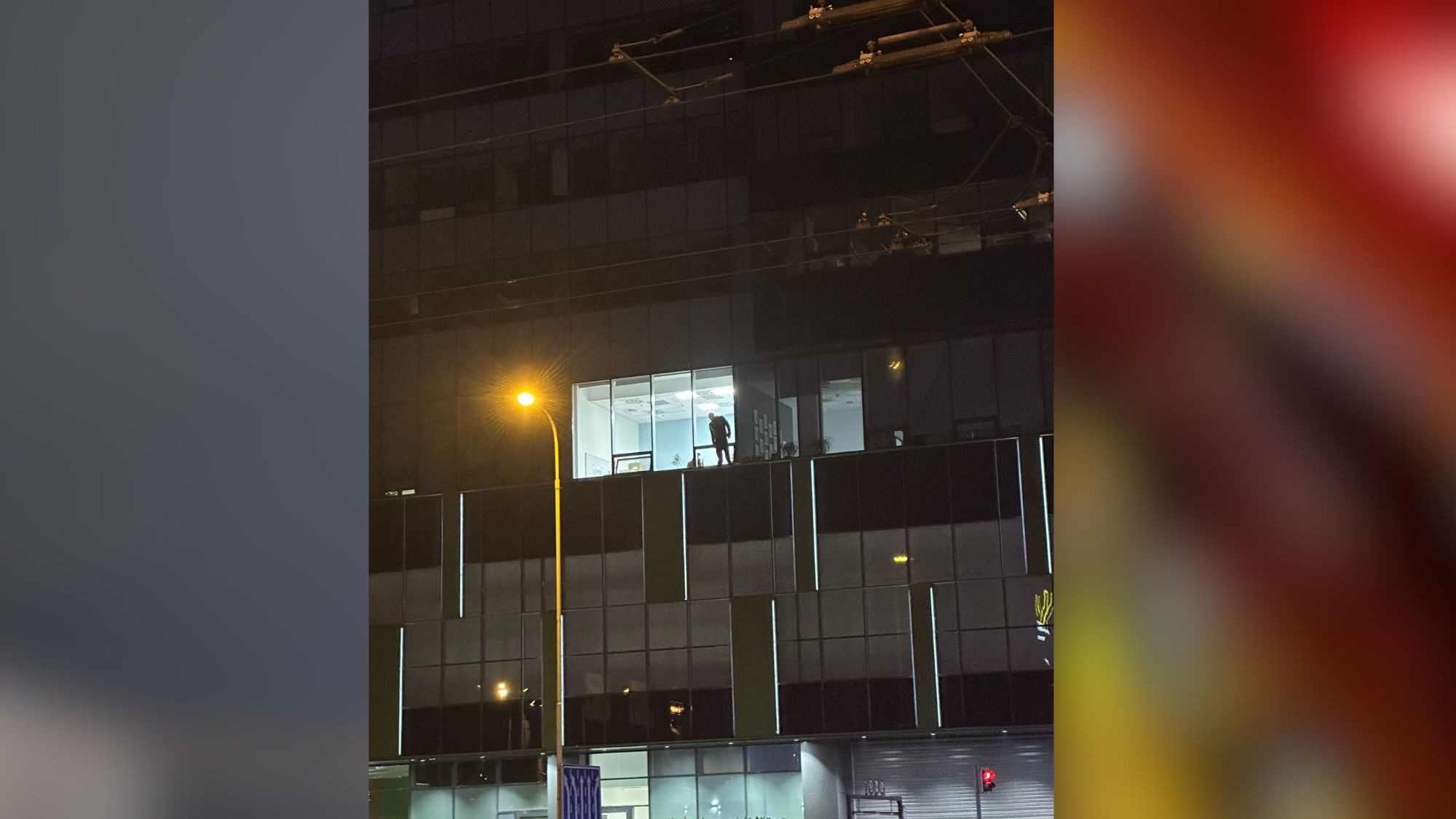 Na mieste boli pripravení hasiči, záchranári a priamo pri mužovi bol aj vyjednávač. Podľa informácií TV JOJ mal muž vyjsť von cez reštauráciu na druhom poschodí. Dostal sa tak na balkón, z ktorého prešiel na parapetnú dosku a po nej až k administratívnej časti budovy, kde zostal stáť. Vyjednávač s ním rozprával cez okno v kancelárii. Od policajtov žiadal pivo a cigarety. Niekoľkokrát vykrikoval, že to musí urobiť a že skočí.