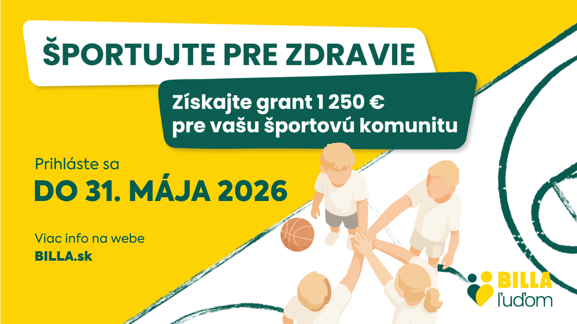 Motivujete svoju komunitu k športu a máte v meste či obci predajňu BILLA? Do grantového programu ŠPORTUJTE PRE ZDRAVIE sa zapojte kliknutím sem. Následne vyplňte prihlasovací formulár a ten zašlite na adresu [email protected] s predmetom e-mailu "Športujte pre zdravie 2026". Čas na prihlásenie sa máte do 31. 5. 2026, víťazné projekty budú oznámené do 15. 6. 2026.