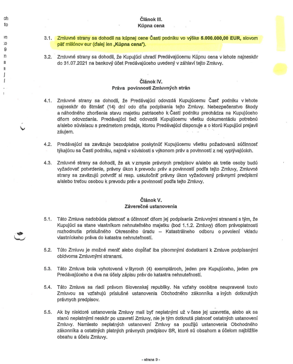 Kúpna zmluva odhaľuje zásadný rozdiel v cene
