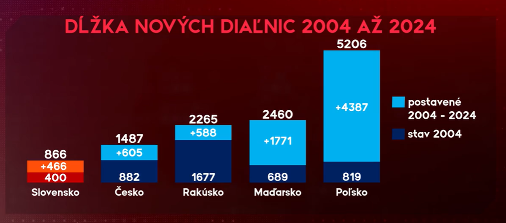 "NKÚ zverejnil správu, podľa ktorej Slovensko za rok postaví iba nejakých 15 kilometrov diaľnic. Zlé čísla, ktoré Slovensko má nesvedčia len o neschopnosti a nekompetentnosti, ale aj o nezáujme politických elít reálne rozvíjať ekonomiku krajiny," vysvetlil v relácií Ekonomika 24 analytik Tomáš Meravý.