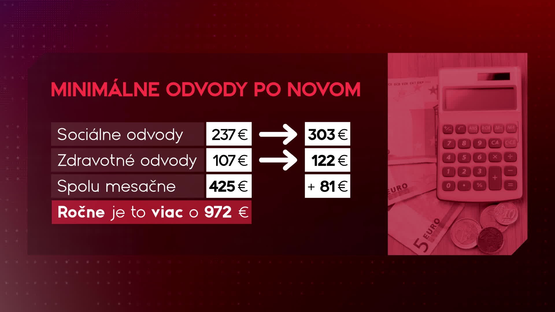 To znamená, že minimálne sociálne odvody vzrastú z pôvodných 237 na 303 eur. A rovnako aj zdravotné odvody zo 107 na 122 eur. Teda mesačne živnostník po novom zaplatí 425 eur, čo je o 81 eur viac. Ročne to už ale bude viac takmer o tisícku. "Ak samostatne zárobkovo činným osobám bola oznámená vo výsledku ročného zúčtovania za rok 2024 aj výška preddavku na rok 2026, tak tá sa zmenou sadzby poistného mení," priblížila hovorkyňa VŠZP Danka Capáková.