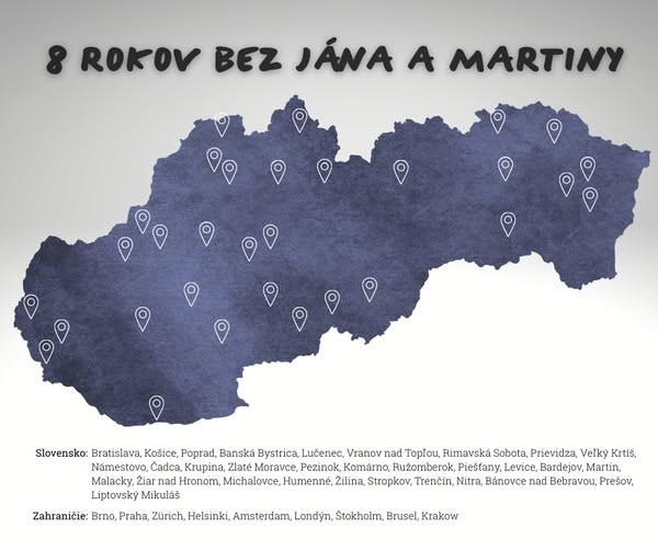 SLOVENSKO / V sobotu, 21. februára, si Slovensko pripomína 8. výročie brutálnej vraždy investigatívneho novinára Jána Kuciaka a jeho snúbenice Martiny Kušnírovej. Ich smrť otriasla celou krajinou, vyvolala masové protesty a odhalila prepojenia organizovaného zločinu s politickou elitou. Spomienky a zhromaždenia v mestách doma i v zahraničí budú pripomínať odkaz boja za spravodlivosť a slušnú spoločnosť.