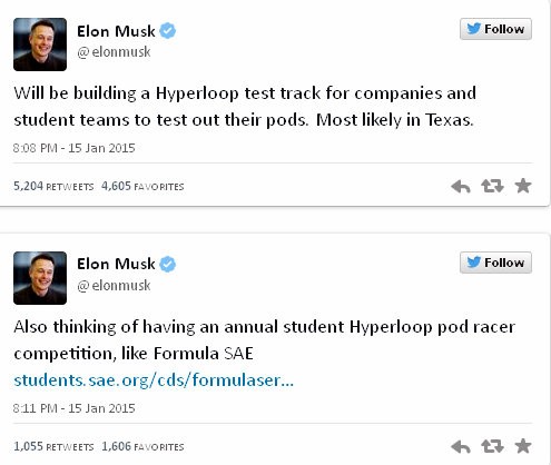 Šéf firiem SpaceX či Tesla Motors Elon Musk sa na sociálnej sieti Twitter pochválil novými informáciami o projekte Hyperloop.
