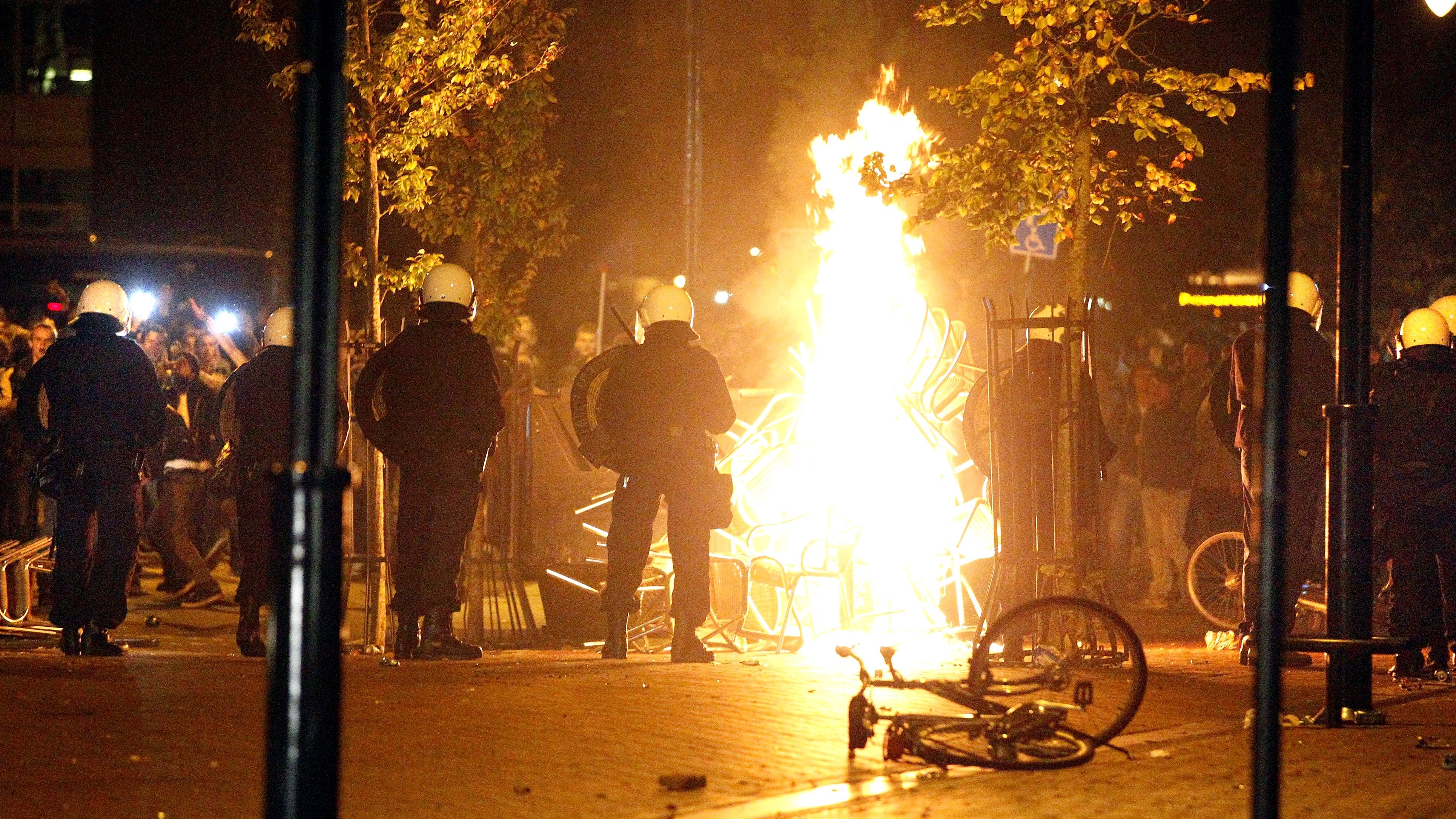 V meste, ktoré má 18 000 obyvateľov sa vraj ukázalo 3 000 ľudí. Výtržníci ničili obchody, zapálili auto a poškodzovali pouličné osvetlenie a cedule. Šesť ľudí bolo zranených, z toho traja vážne. Približne dvadsať ľudí polícia zadržala.