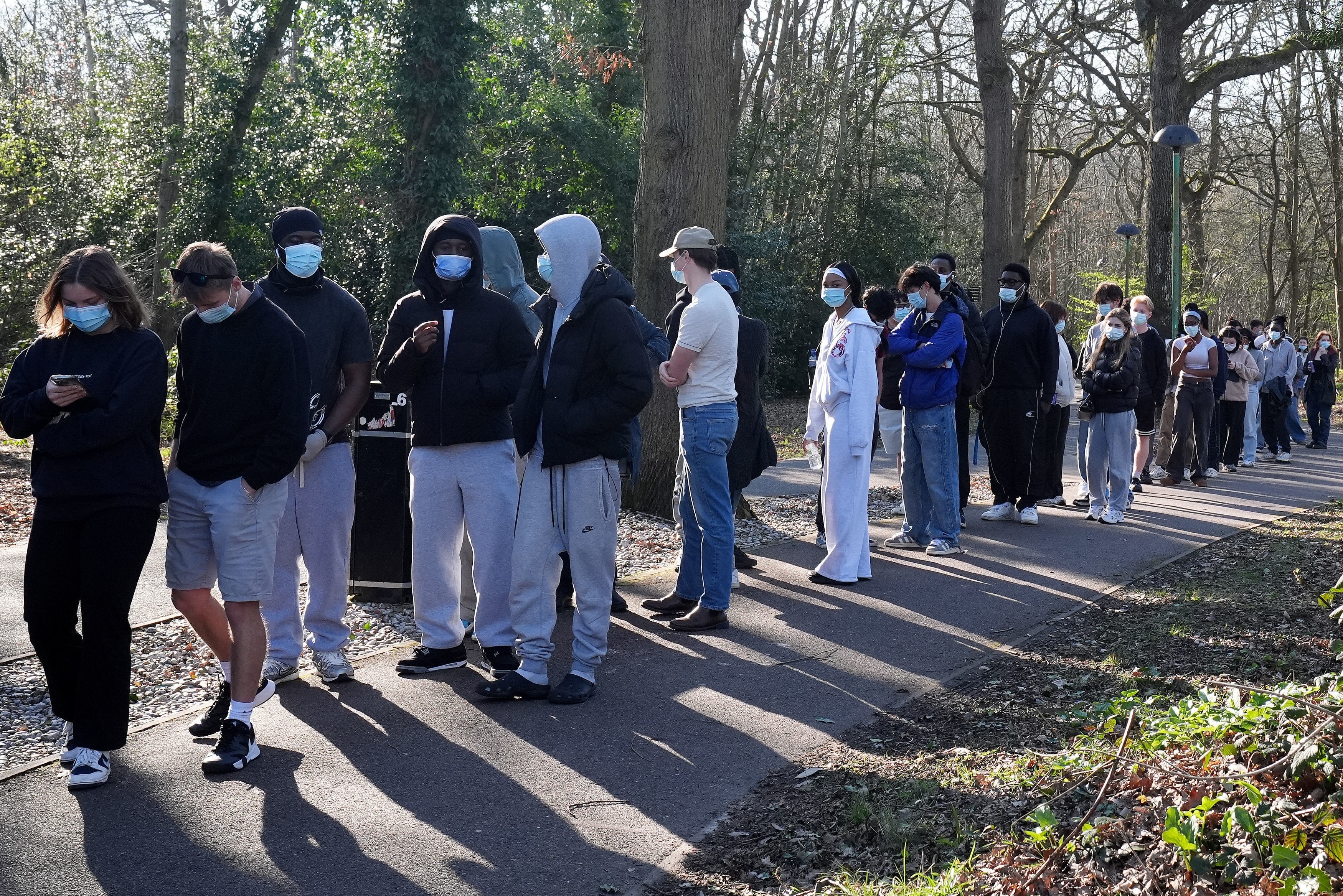 Študenti čakajúci na očkovanie.