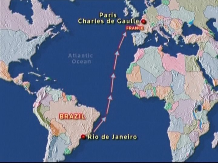 Lietadlo vyštartovalo z brazílskeho Ria de Janeiro o polnoci SELČ a smerovalo do Paríža. Brazília už začala rozsiahlu pátraciu akciu pri svojom severovýchodnom pobreží. Brazílska polícia uviedla, že počasie bolo jasné až do dnešného rána. "Pátranie bude trvať dlho... Môže to byť dlhý a smutný príbeh. Čierna skrinka bude na dne mora," povedal dôstojník Fernando Moronha.