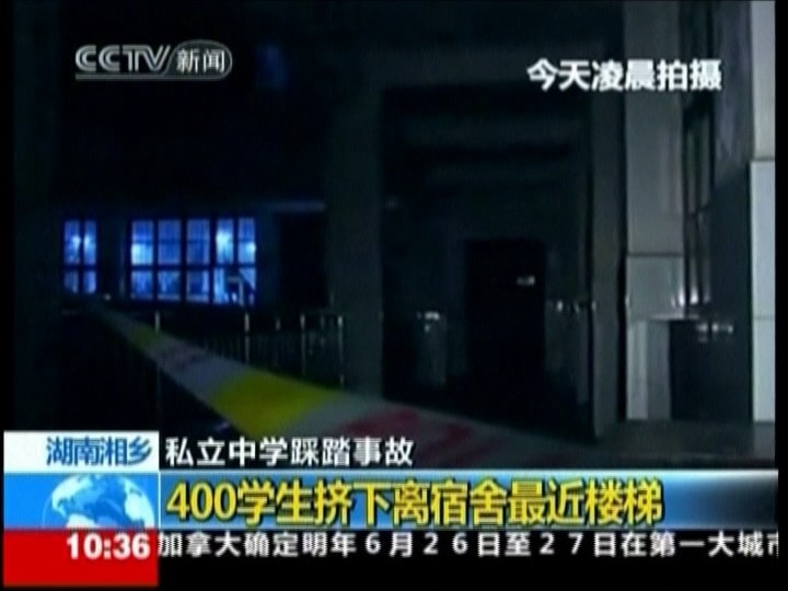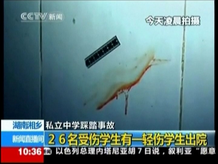 Študenti opúšťali večerné vyučovanie v pondelok o 21.10 h. miestneho času na súkromnej strednej škole v meste Siang-siang, keď jeden z nich spadol na schodoch a zhodil na zem aj ostatných. Medzi študentmi vypukla panika a udupali sa.