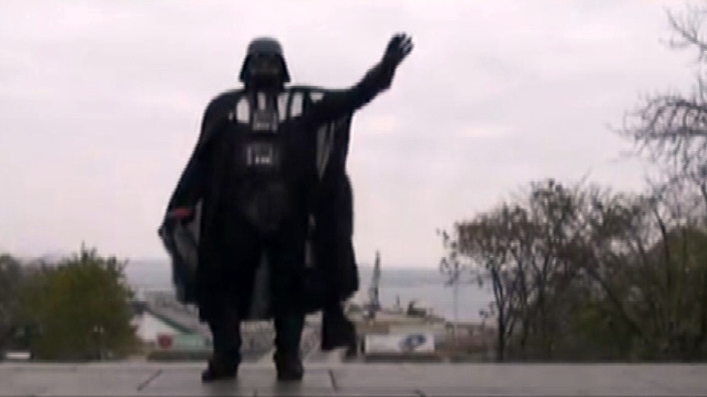 Aj tento muž sa rozhodol jeden z ponúkaných pozemkov získať. Ako Darth Vader chce totiž k Čiernemu moru zaparkovať svoj vesmírny koráb. Šokoval najskôr strážnikov. "Počul som, že sa v Odese porcuje pôda a veľa úradníkov, pracovníkov radnice aj starosta sa pridalo na temnú stranu," povedal.